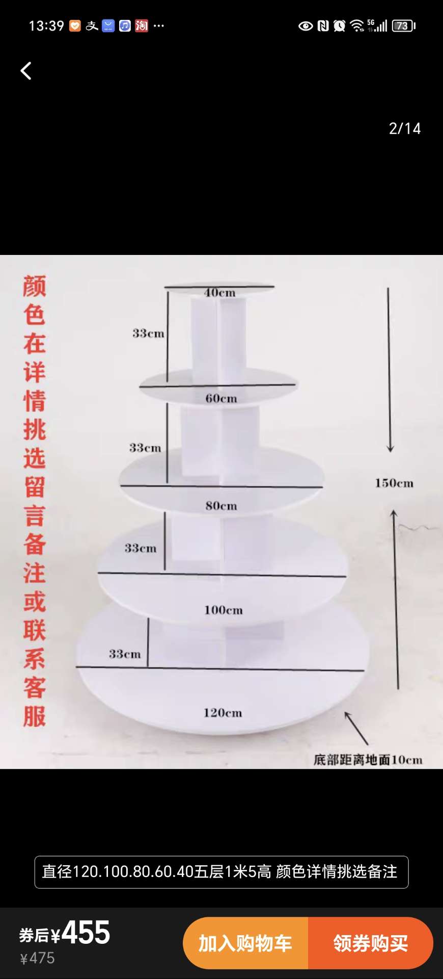 闲置展示柜一台,五层,直径1.2米,一共用了两次,展示完就闲置了,木质的,有需要的150元直接带走,13573182766