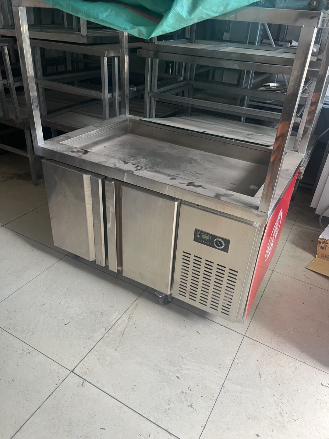 个人出售99成新烧烤凉菜展示柜,底下冷冻,上边冷藏保鲜,新的用了2个月,500元。另有货架转让,80元一组。淄博烧烤小炉子15个,35一个。