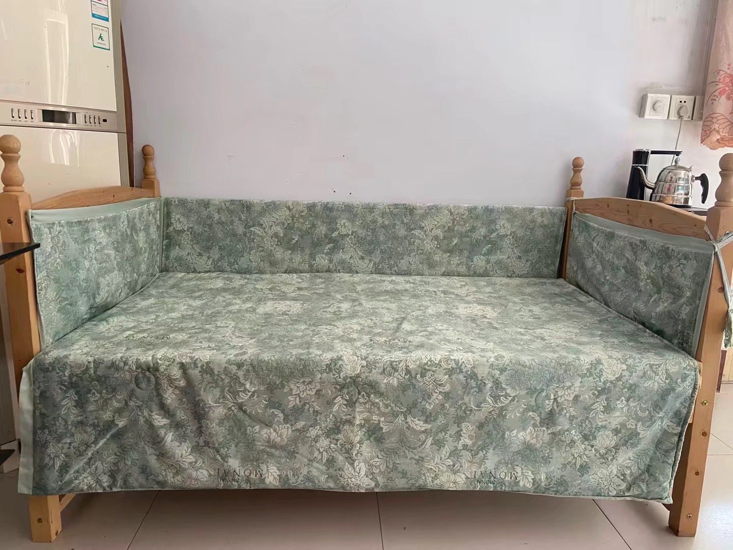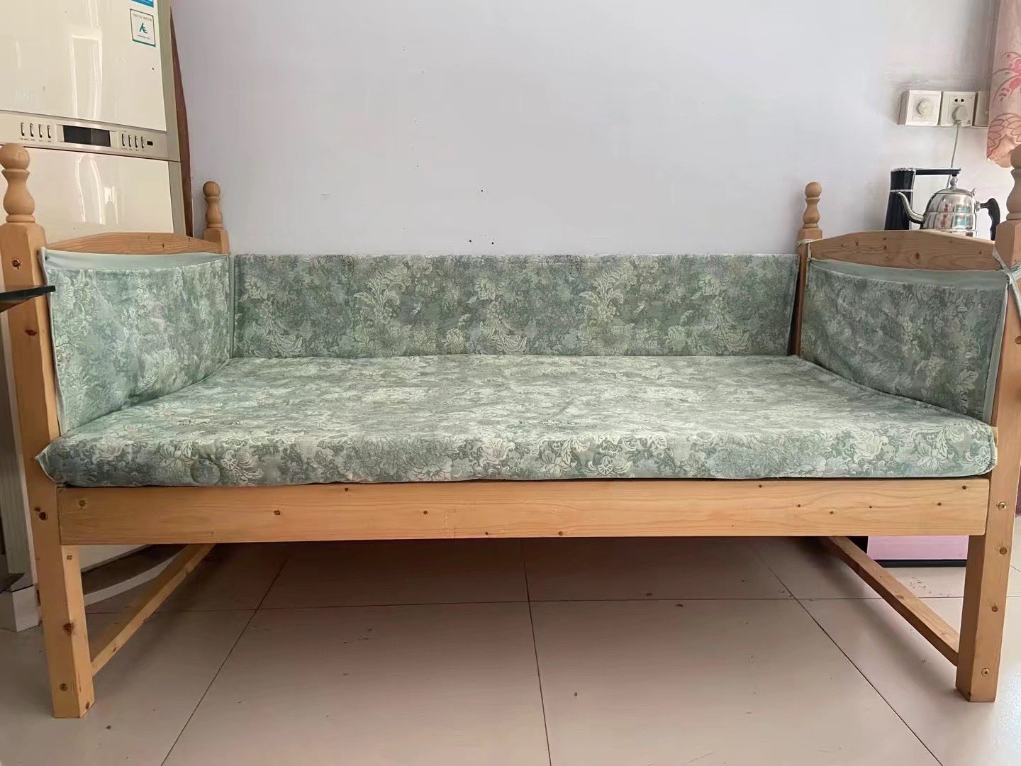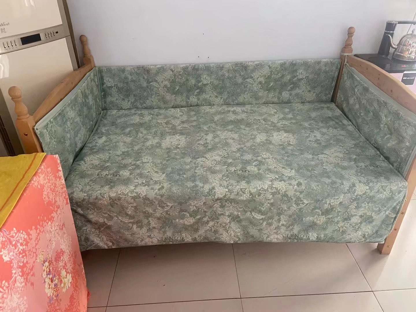 实木儿童床,婴儿床,长1.6米,宽90厘米,高45厘米,买了没怎么用,顾家家居购买当时加床垫1500元,床垫两层10厘米,现在床➕床垫➕床围布600元带走