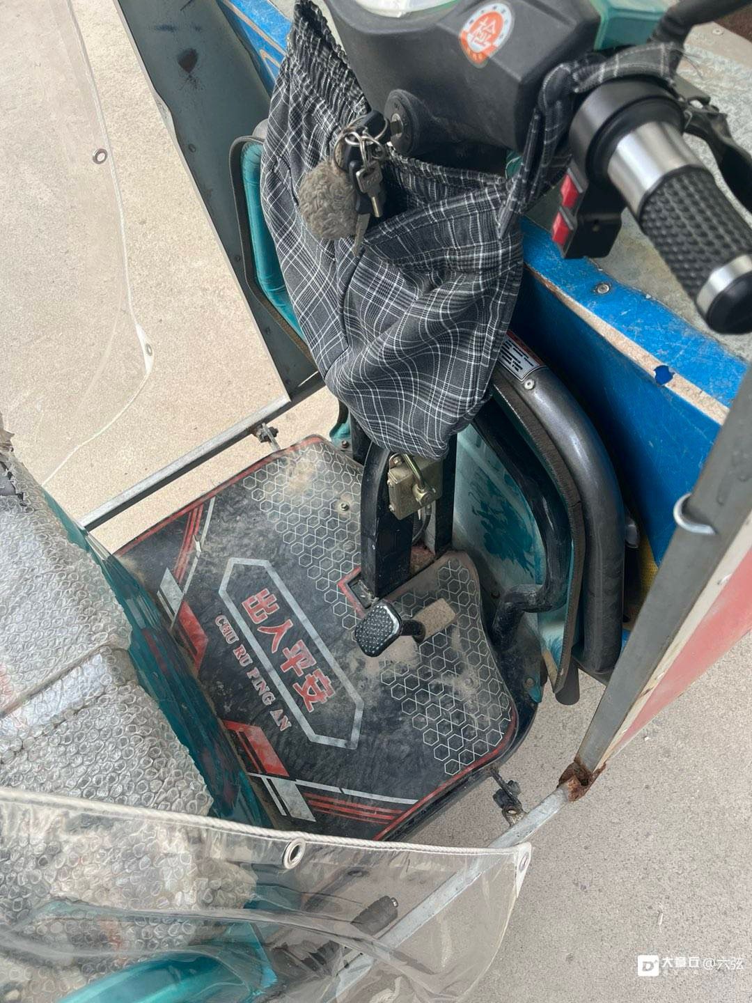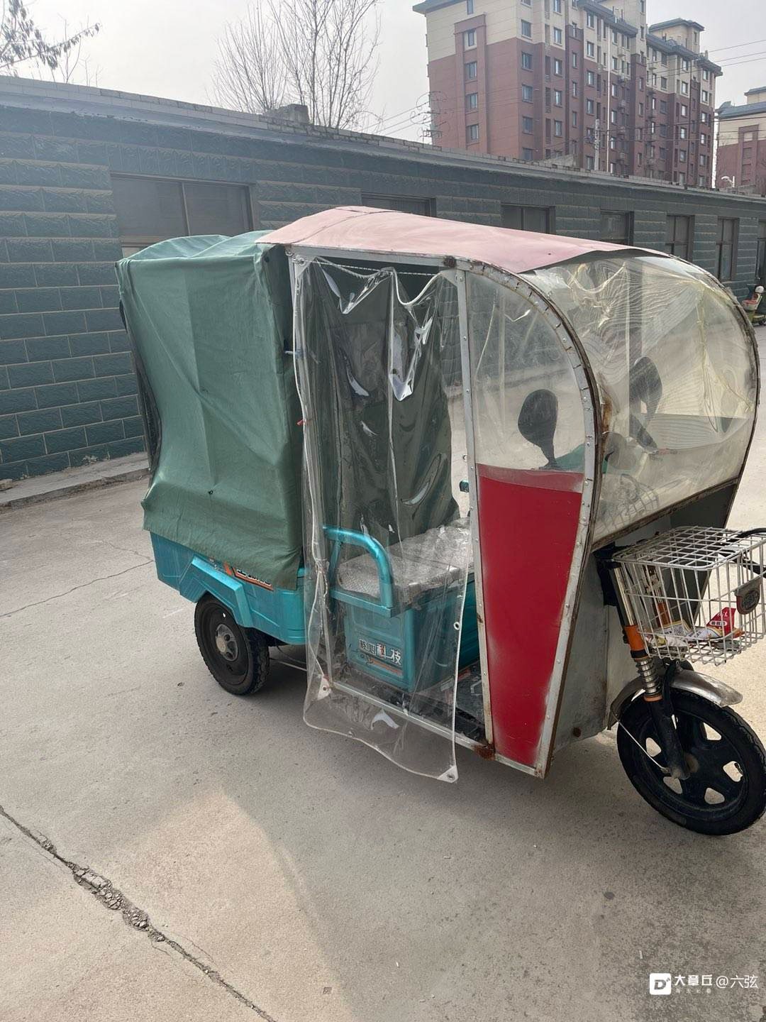 改装重型电动三轮车。带蓬。自己做的钢瓦帆布蓬 低价处理1200。 接娃拉货神器。车库停放成色新。5块电瓶