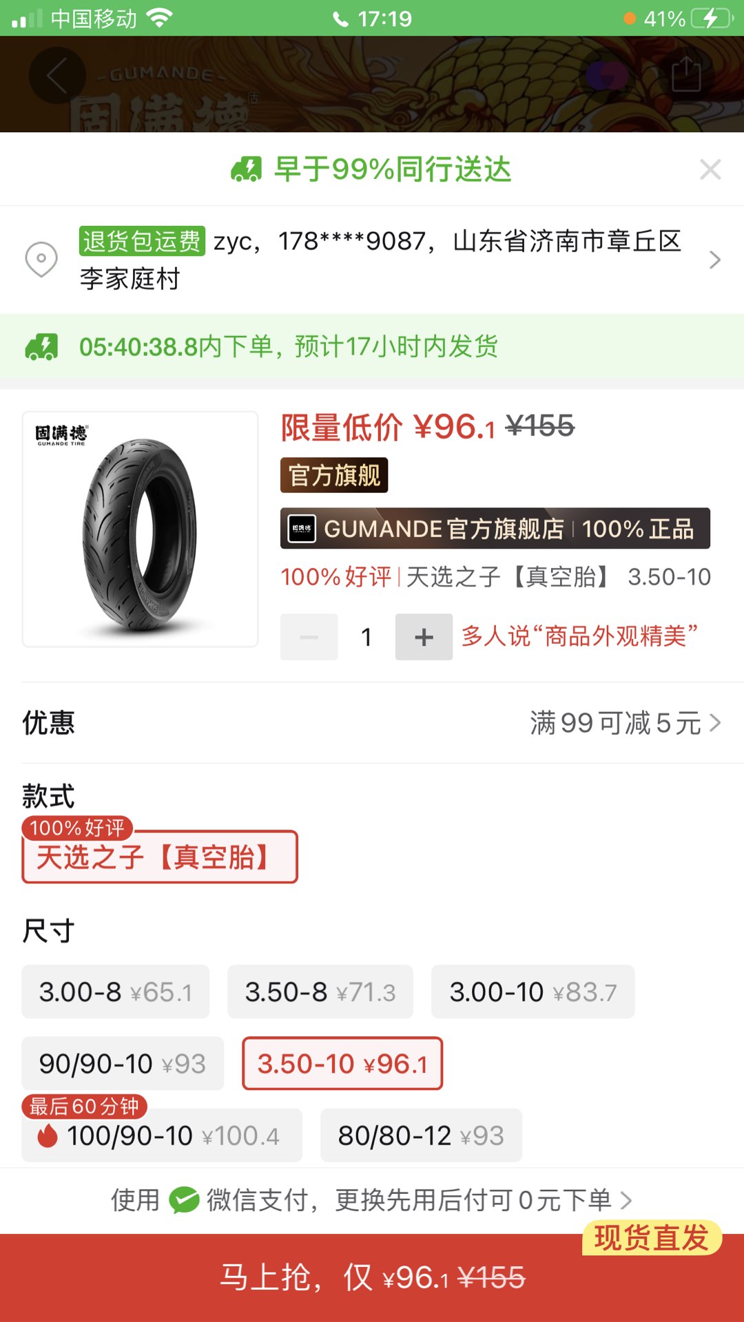固满德天选之子3.50-10,买错型号了,不给退,小100块买的,便宜点70块出了