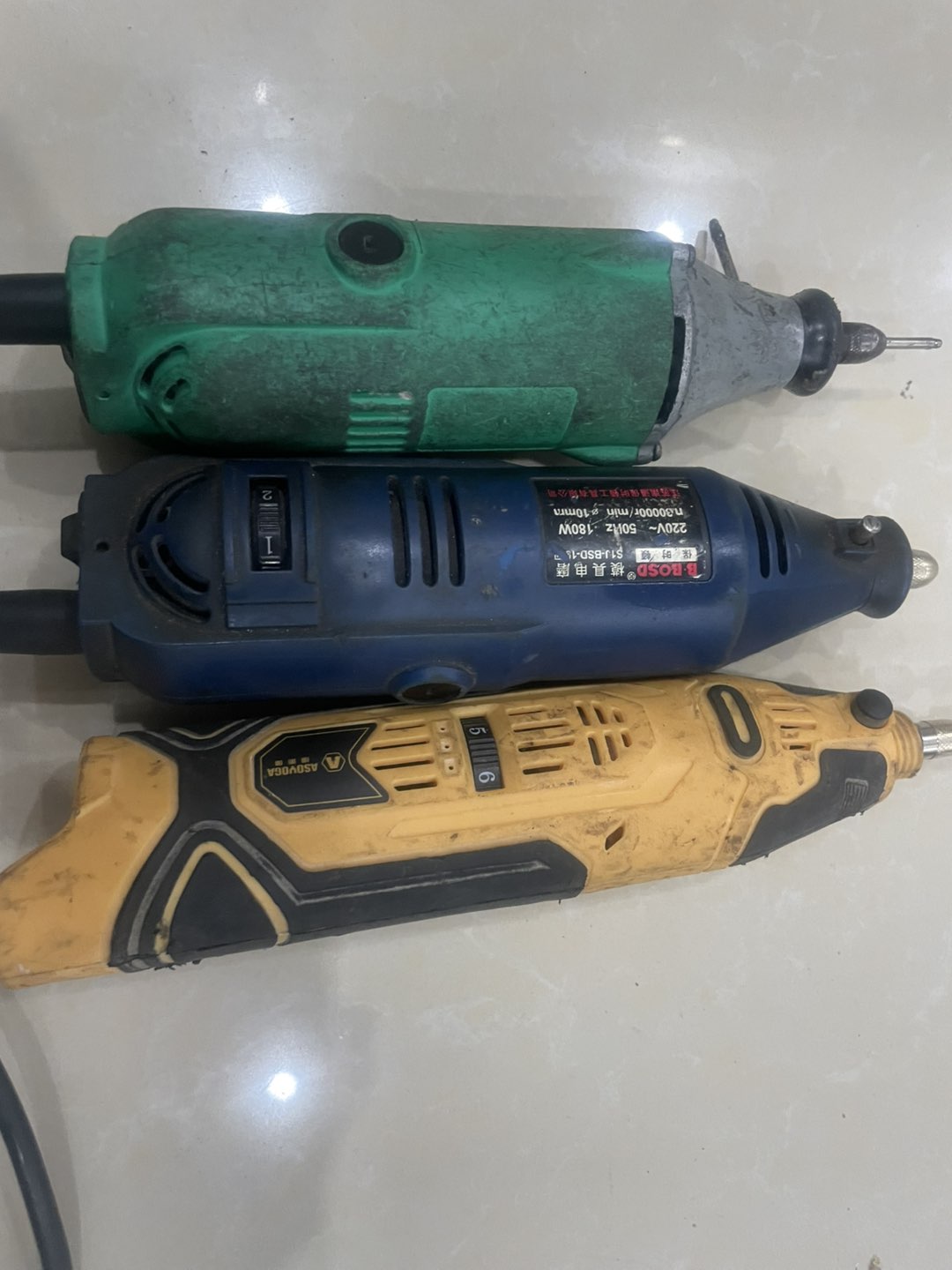 电磨雕刻机三台。 两台插线的 ,一台锂电的,都带调速功能,转速很高,迷你角磨机一台锂电的