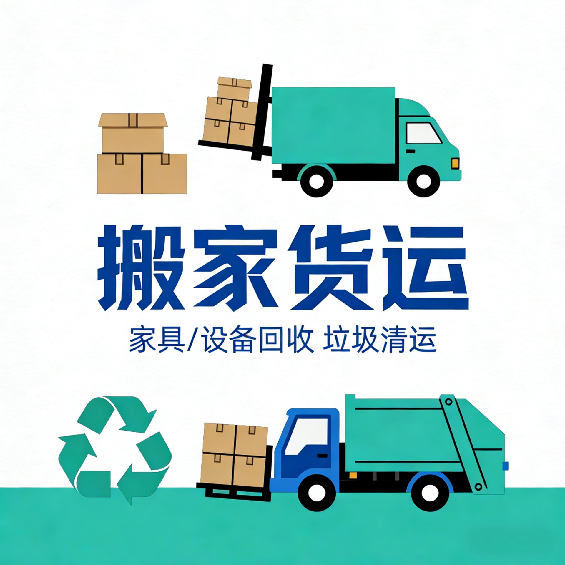 专业搬家、长短途货运、家具回收、设备回收、废旧家电回收、垃圾清运、杂物清理,全城上门,价格公道!