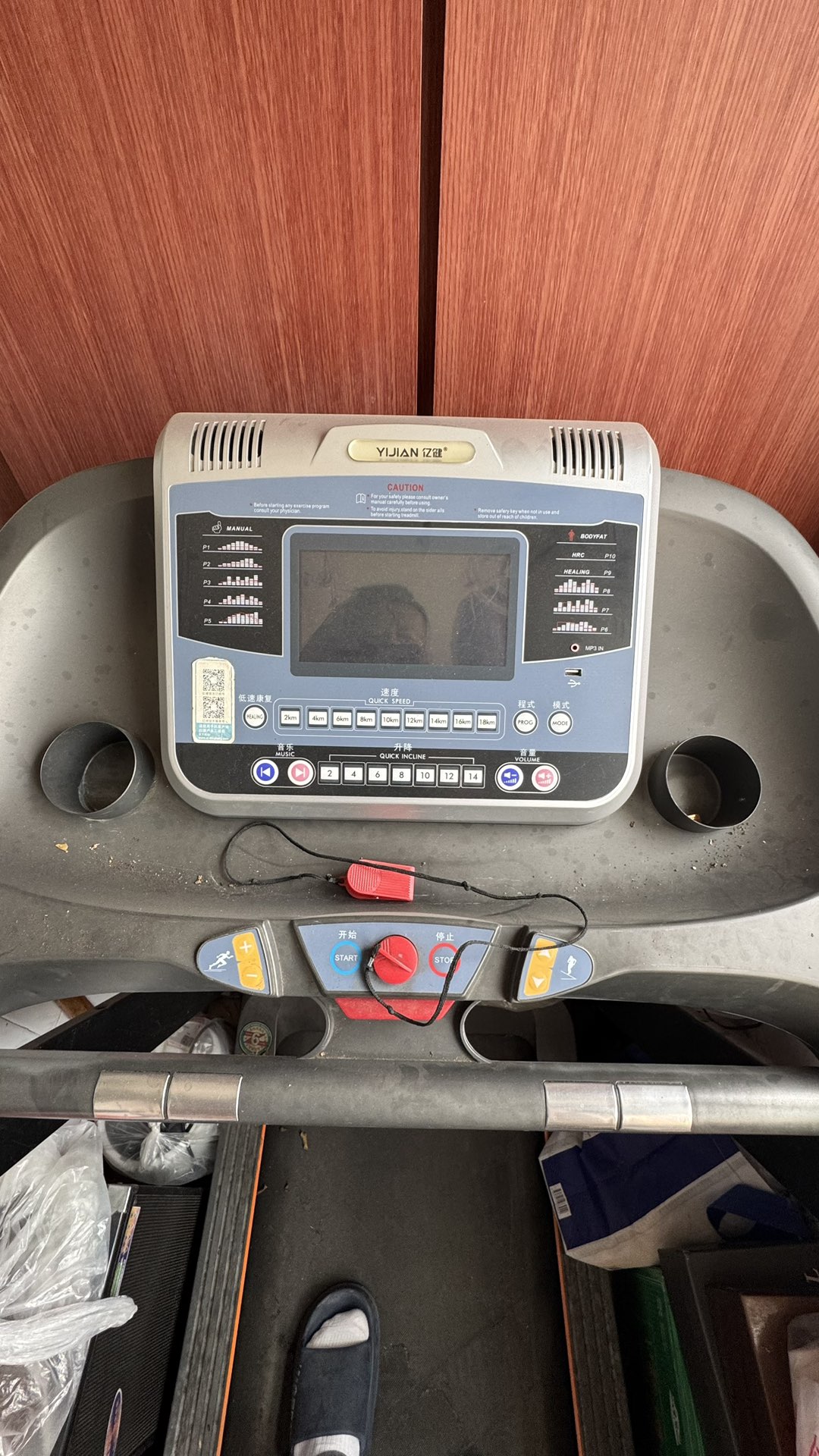亿健跑步机一台,搬家了,没地方放,长1.8米宽70厘米,有需要的电话联系13864158666