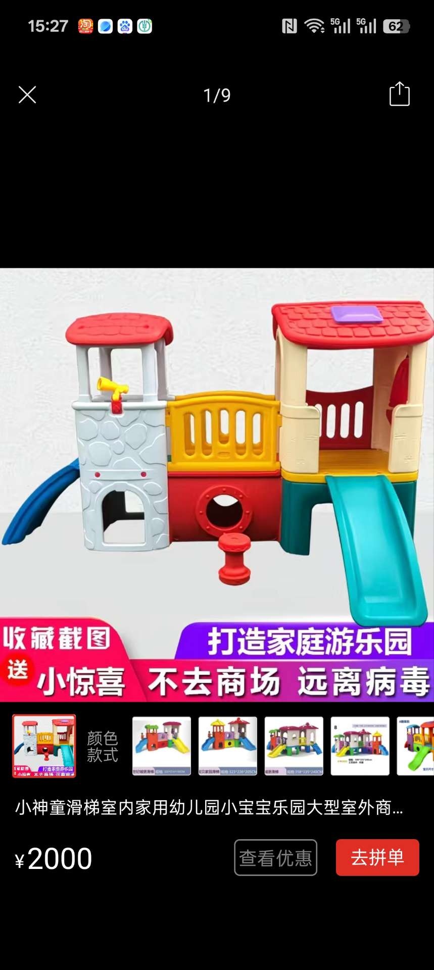 三米多的组合滑梯,色彩斑斓,有使用痕迹,质量超好。360自提