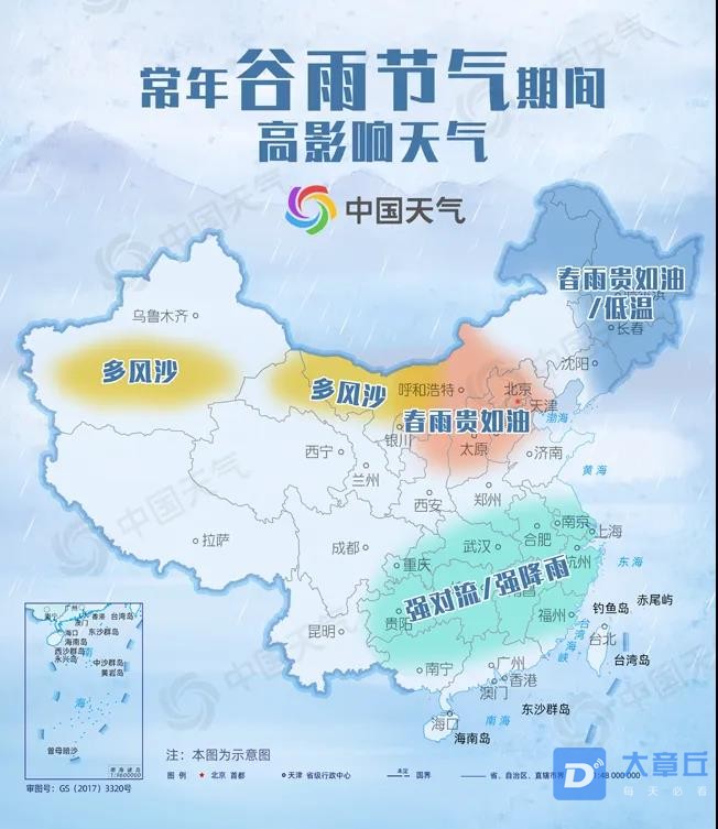处在暮春时节的谷雨,意味着春将尽,夏将至,冷空气大举南侵的情况比较少了,但影响北方的冷空气活动并不消停。气温方面,今年谷雨节气期间我国大部地区的气温较常年同期偏低,前期受冷空气影响,北方气温将普遍下降6-8℃、部分地区10-14℃,将阻碍春播进程。