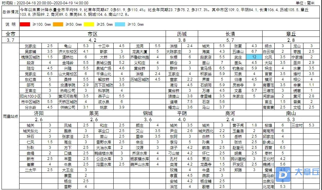 全市平均3.7(长清武庄最大12.0),其中,市区4.2(党家庄最大6.5)历城3.8长清5.7章丘2.8济阳2.6莱芜2.6钢城3.6平阴4.0商河2.4南山5.3。