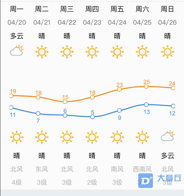 济南市气象台4月19日16时发布的近期天气预报: