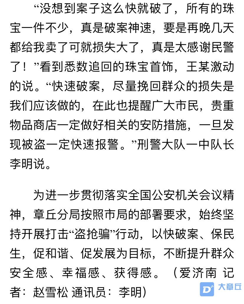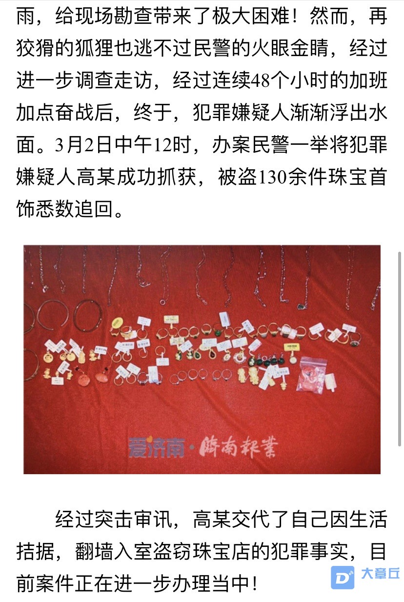 价值20万!章丘一珠宝店130多件首饰被盗!
