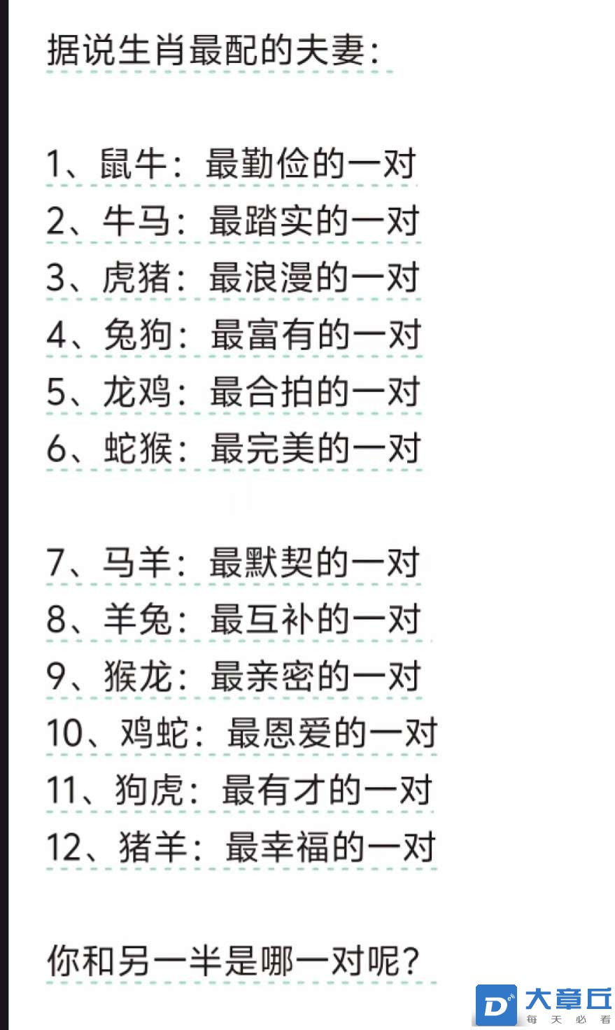 据说生肖最配的夫妻,你和另一半是哪一对呢?