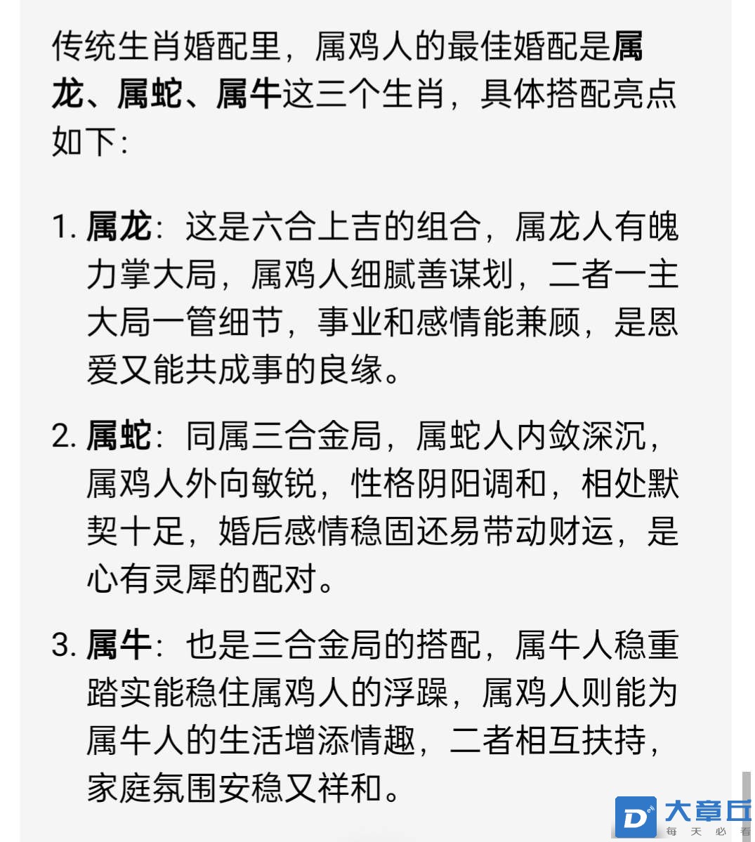 我和我媳妇就是我属龙她属鸡。有时候也干仗啊