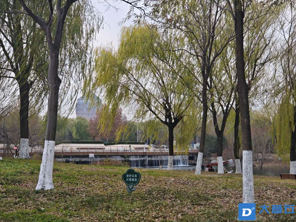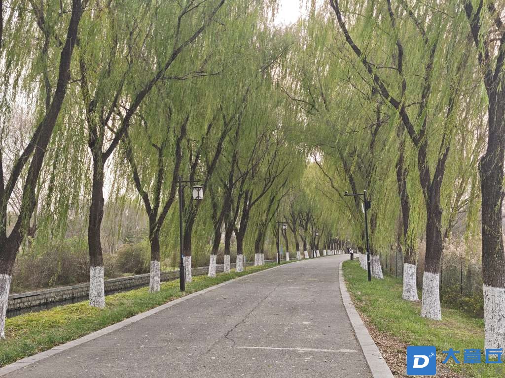 穿过小桥就到了公园西边,这儿完全是另一种风景!一大片荷风柳浪,茂密的芦苇荡风吹过的时候芦苇晃来晃去,好看极了,想想夏天的时候,肯定更好看!这条小路两旁全是垂柳,枝条垂下来,走在中间感觉心情都变好了,路上还碰到好多一家三口、一家四口来散步的,热热闹闹的全是生活气。