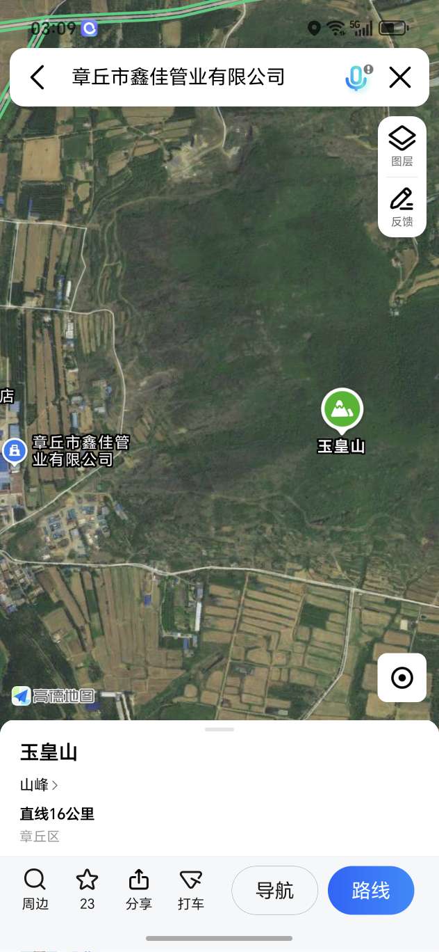 导航过桥后右拐,顺着上山的路走就行,按红色箭头走,也可以直接搜(章丘市鑫佳管业有限公司),只要是往山上的方向就对了,路很好认。我从地图上看这座山属于玉皇山!上山的路不好走开车最好停车步行或者骑车上去!