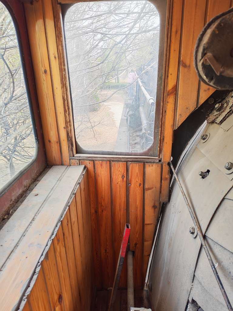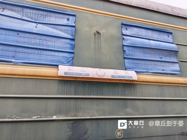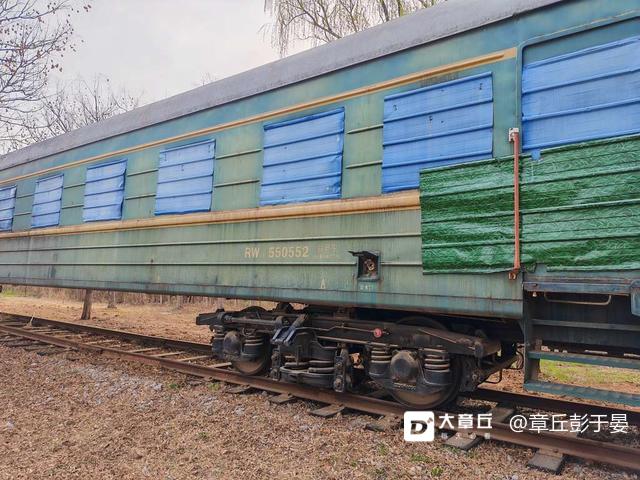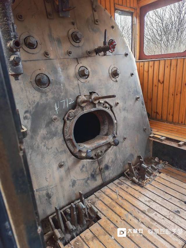 火车头后面拉着两节车厢,窗台外面都用铁皮封住了!离着近一些看看感觉很钢铁巨兽似的,这大铁块能跑起来,的用多大的动能!