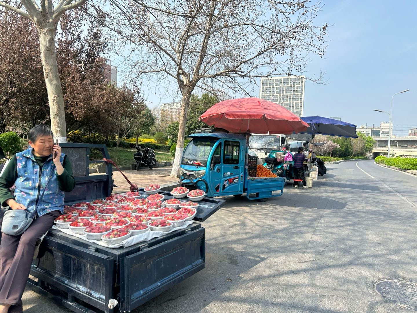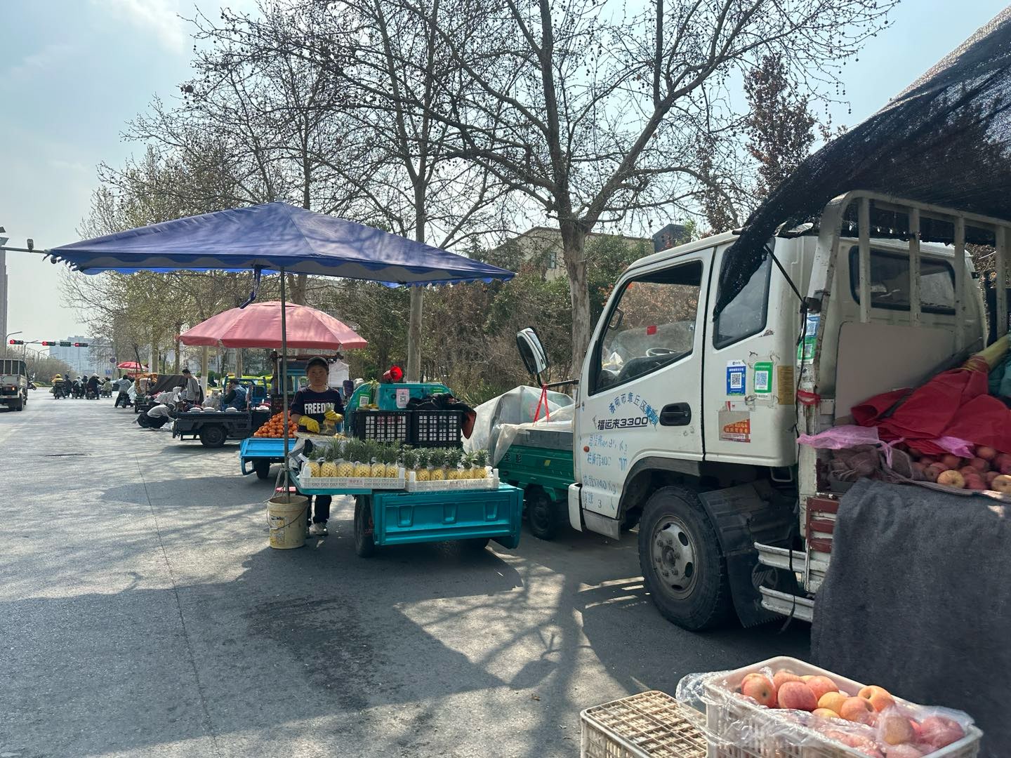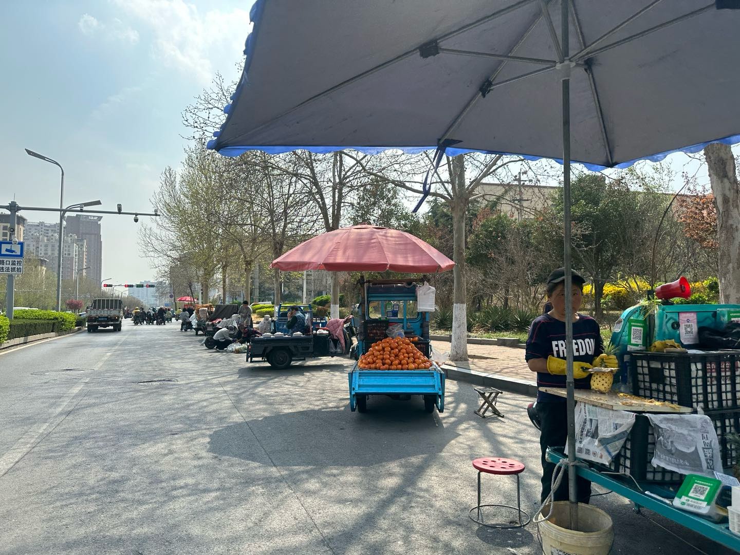 现在路边的小摊子是真多,买个水果蔬菜啥的太方便了。骑电动车稍微停一下,挑两斤就走,比去超市近多了,还省事。