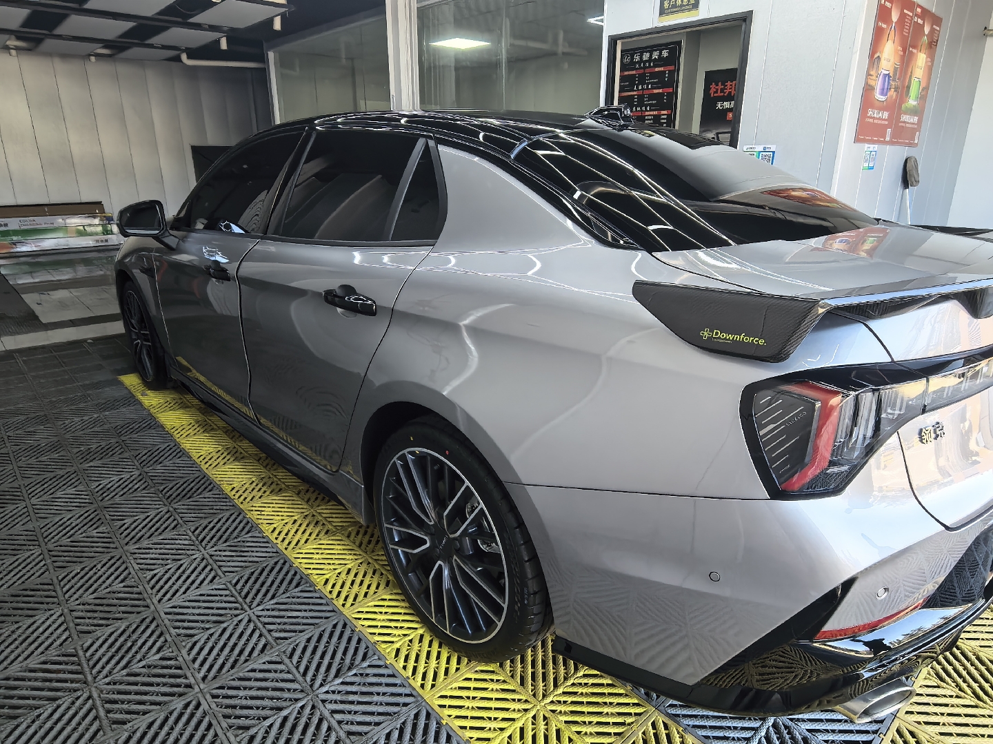 不光车身,内饰、轮毂也都有仔细的清洗,临走还不忘在脚垫放上一块防滑布,可以说是非常贴心了。看着自己的爱车整洁如新,心情也好了起来,要是明天能不下雨就更好了!