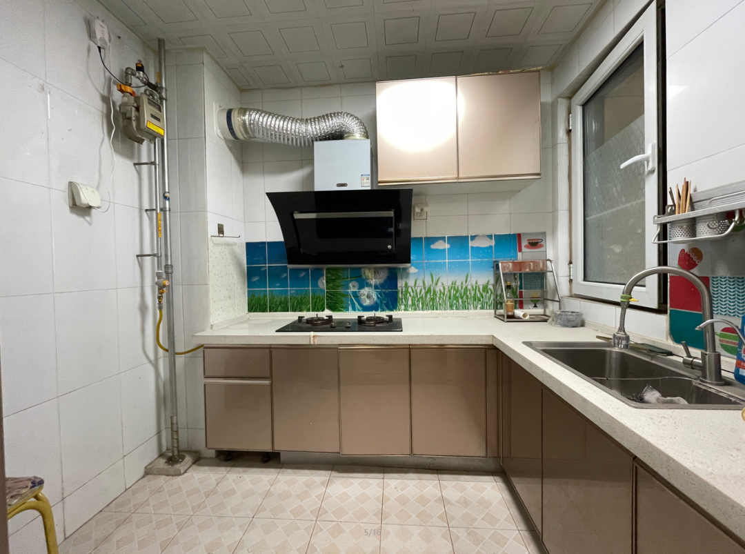 但咱也得实话实说,房子毕竟有年头了。装修是十年前的风格,现在看可能不那么时髦了。全家就一个卫生间,要是住的人多,早上得协调一下。房主倒是住得挺仔细,但也能看出来窗户、五金这些地方,仔细看能看出使用的痕迹,看房时得多留心。