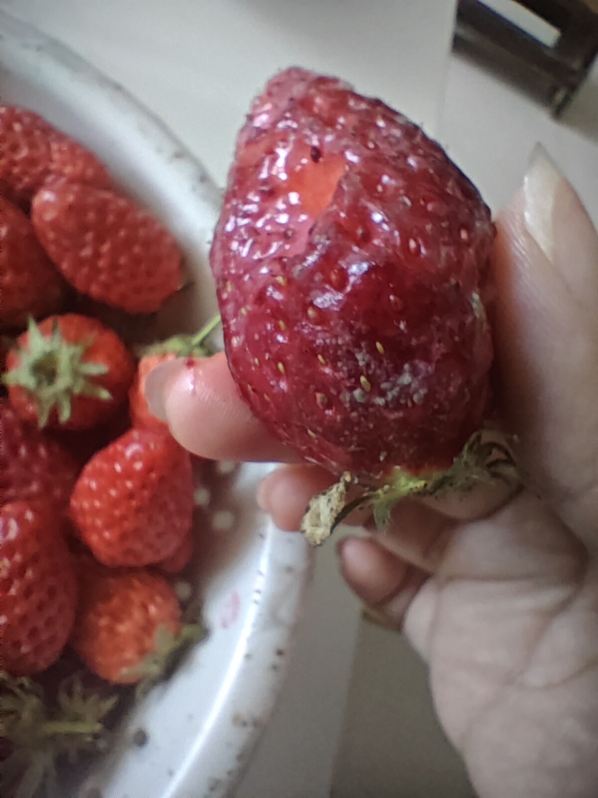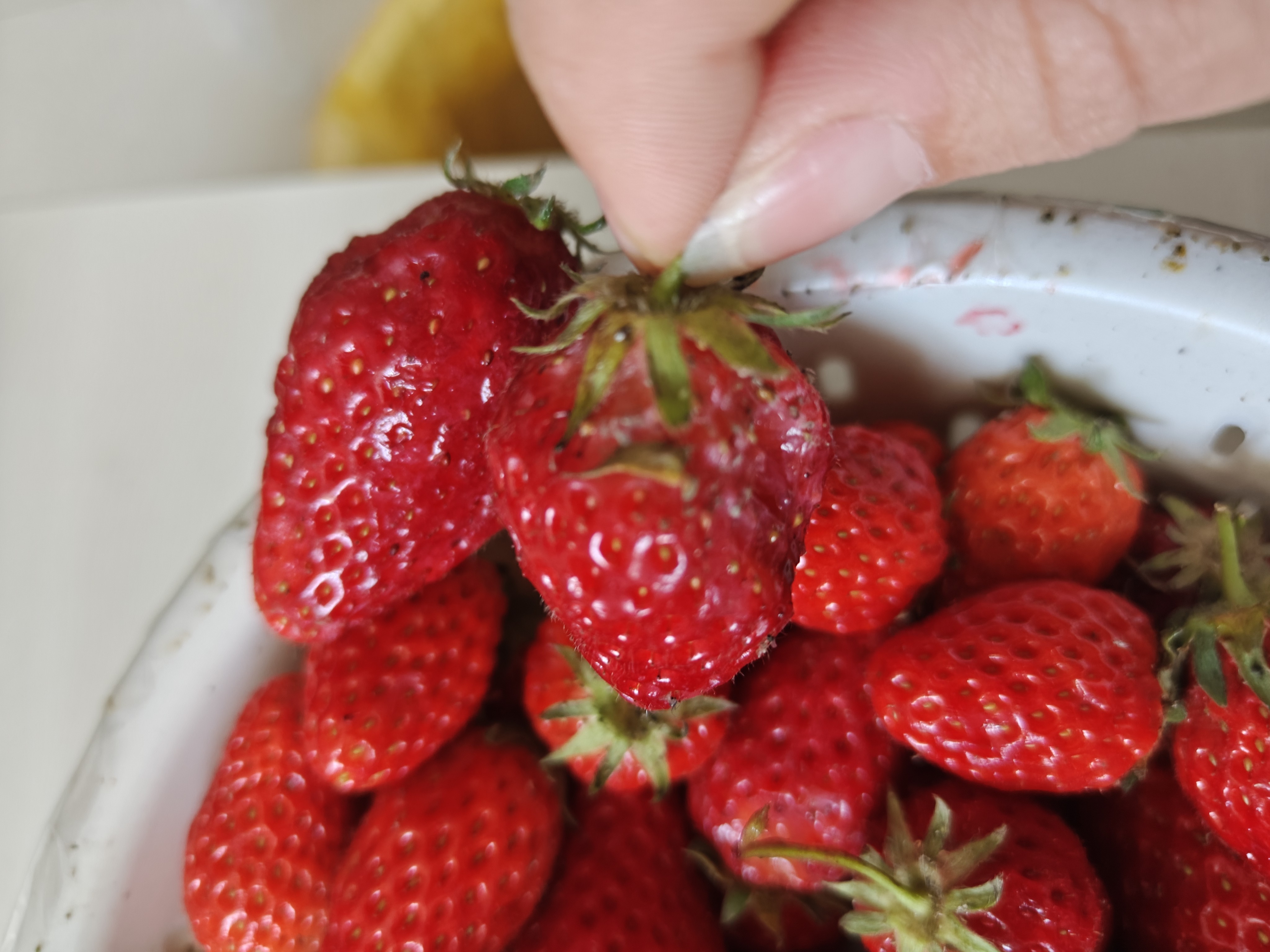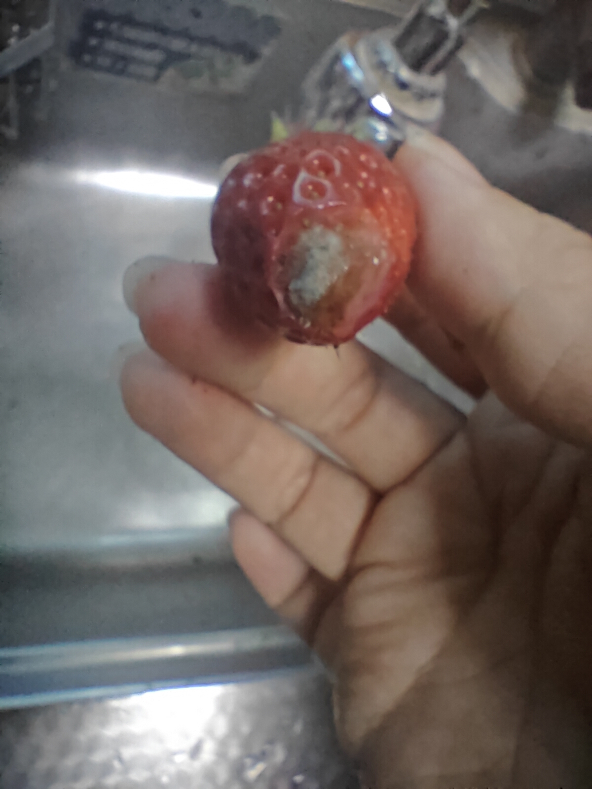 今天买的草莓和樱桃全是长毛的,草莓上面一层是好的下面全是长毛的,光盆接近110克。
