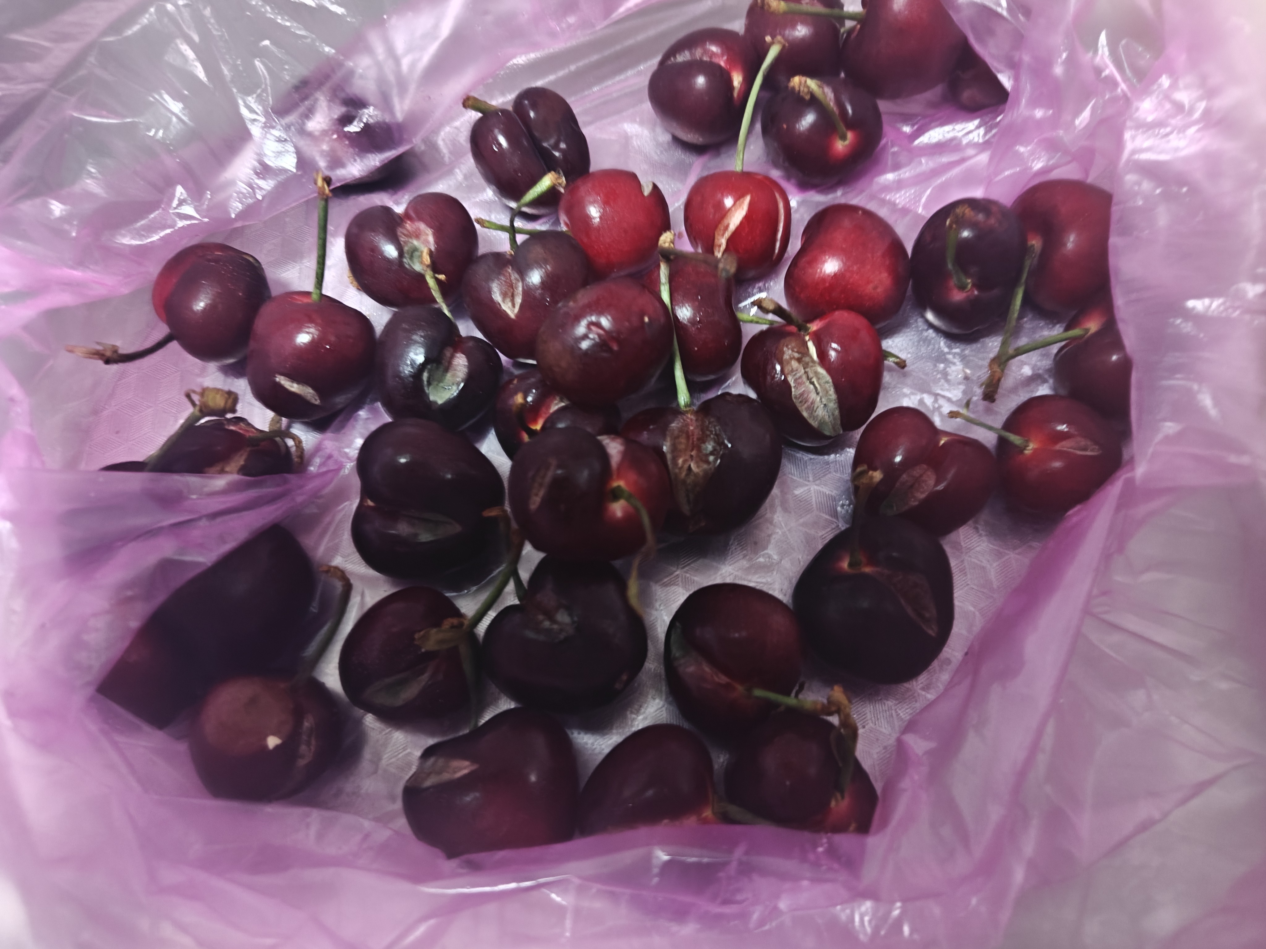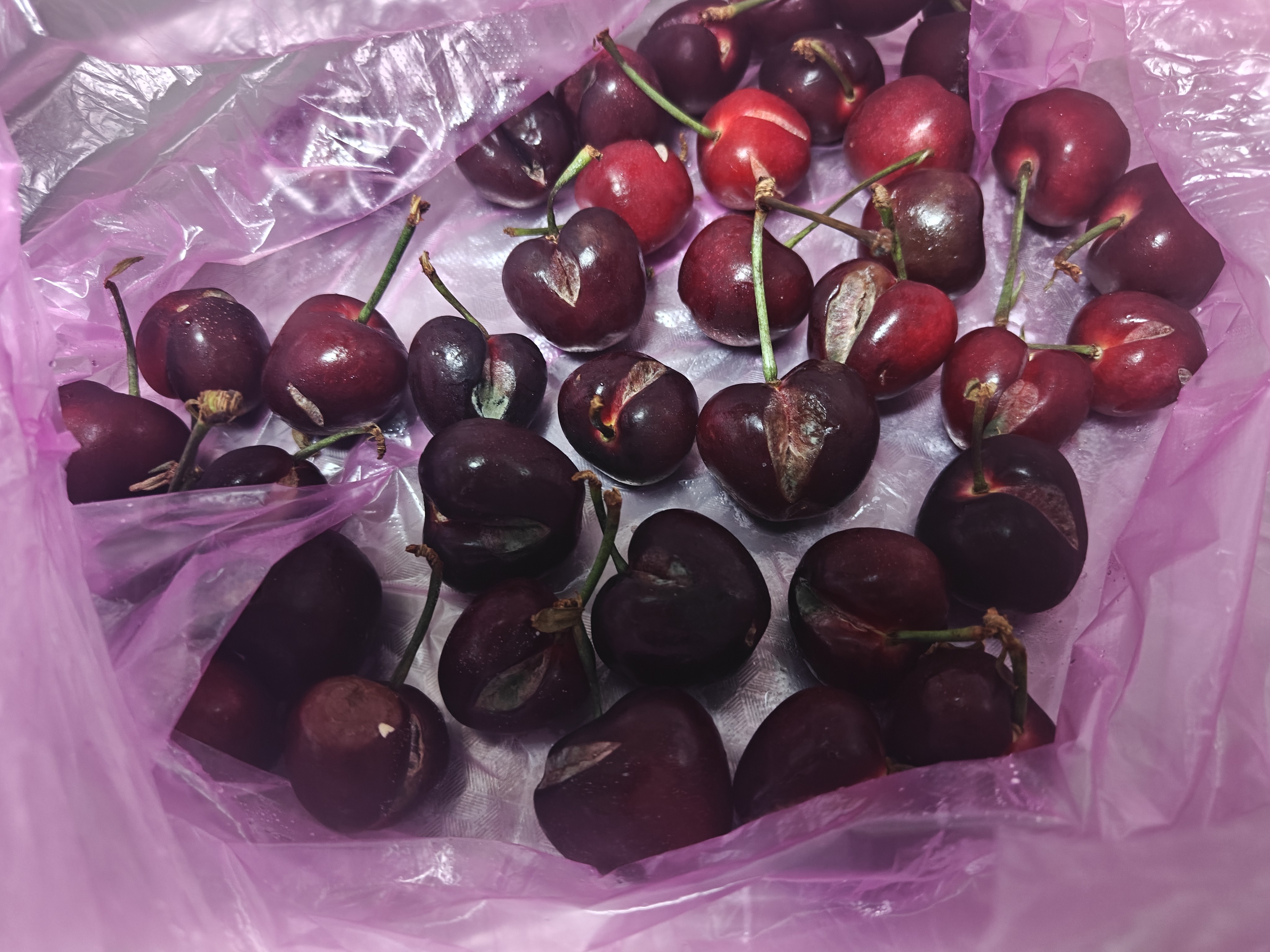 车厘子我看到了有裂的,比较便宜也无所谓,回来就放冰箱了,晚上想洗几个全长绿毛。